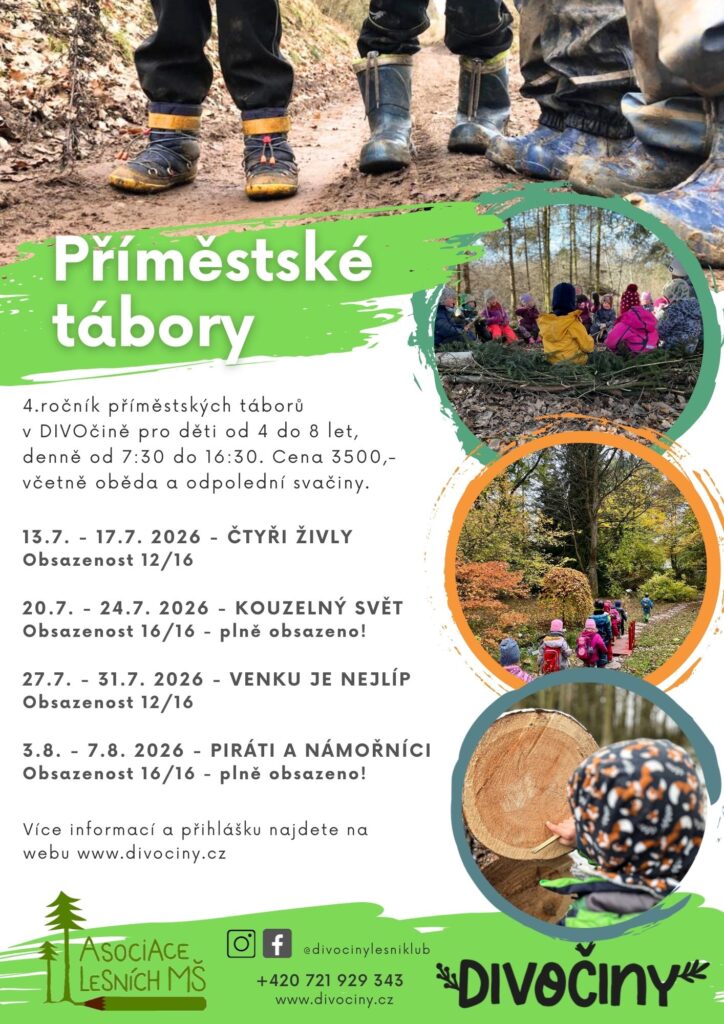 V roce 2026 pořádáme čtyři turnusy příměstských táborů v Čelkovicích.